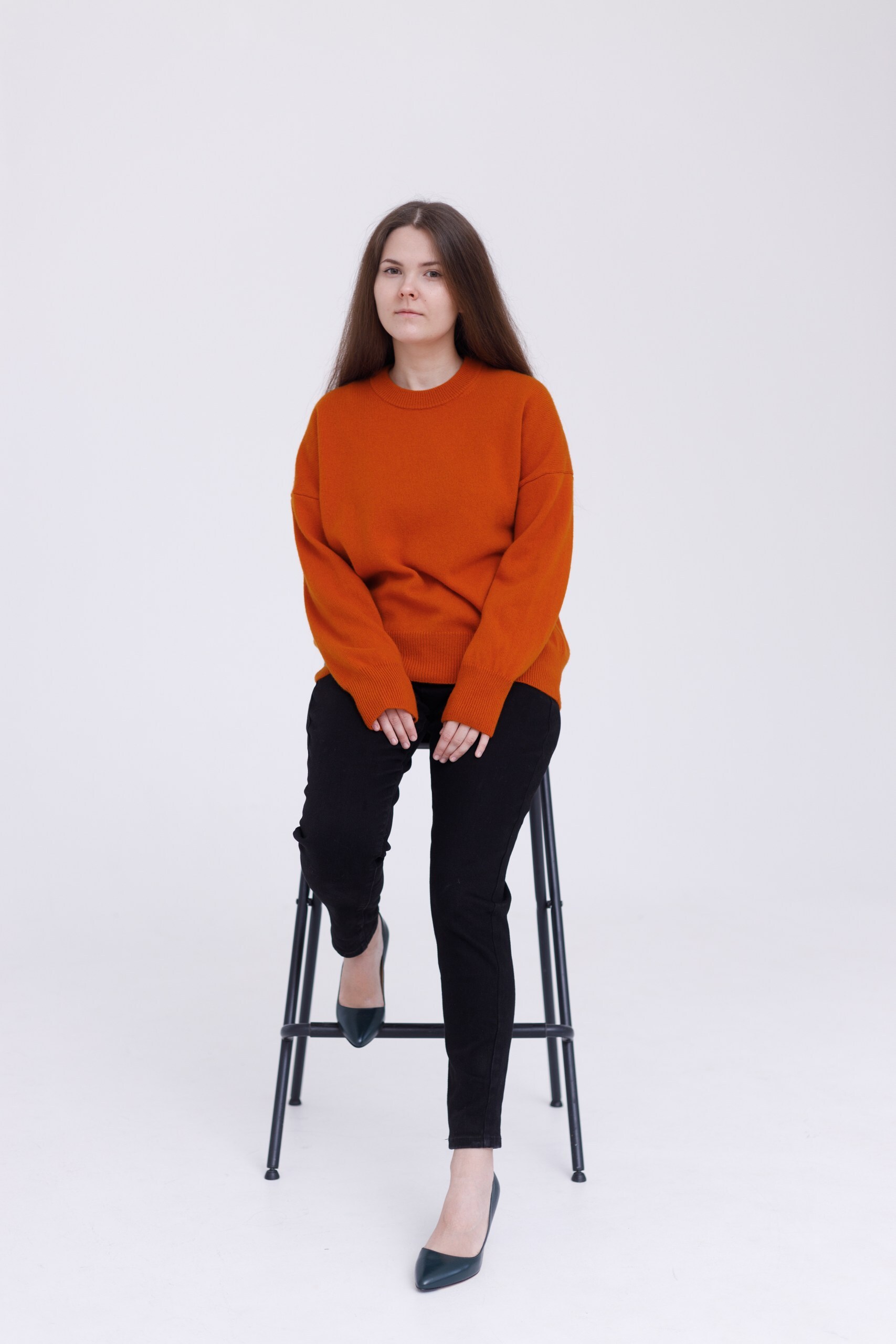 На модели джемпер размера 46-48.
